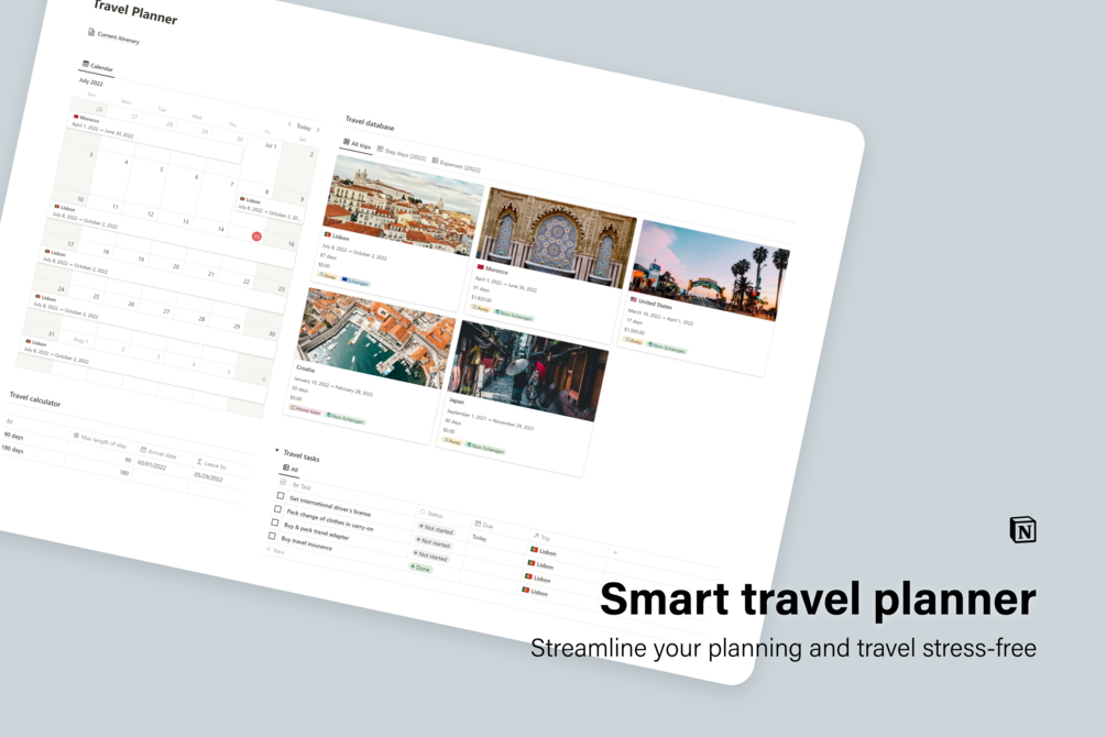 - Travel to-do database (+ filters)